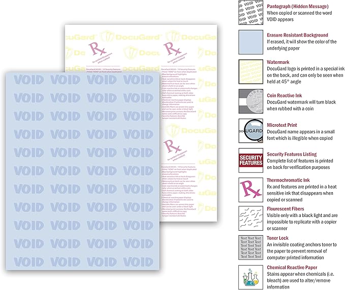 DocuGard Premier Medical Security Paper for Printing Prescriptions and Preventing Fraud, CMS Approved, 10 Security Features, Laser and Inkjet Safe, Blue, 8.5 x 11, 24 lb., 500 Sheets (04543)
