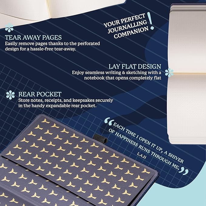 - SMOOTH WRITING: 192 micro-perforated pages (96 sheets) of fountain pen-friendly paper. Silky smooth surface for effortless writing or drawing. This A5 notebook journal (6.1 x 8.5 in) in a lay-flat design is ideal for use as a diary, planner or daily journal.