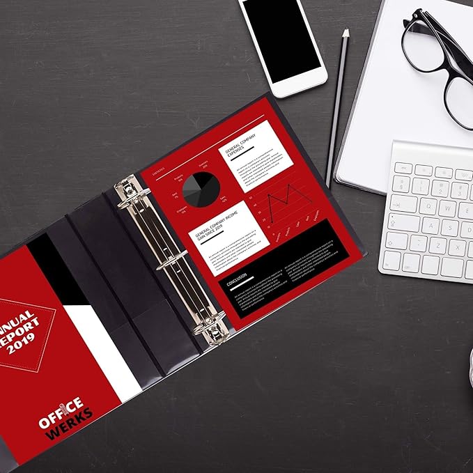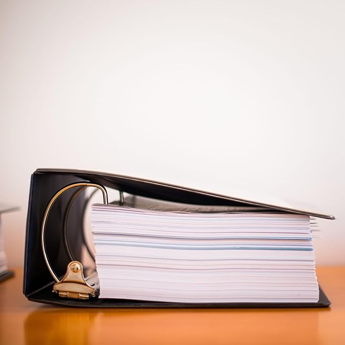 • Great Capacity — 550 sheet capacity for 8.5" x 11" sheet size. Secure more documents in just one three ring binder. The binder rings are strong enough to keep your documents organized. All the papers you need can be stored in one single binder. Binder dimensions: 12" x 11.6" x 3.2"