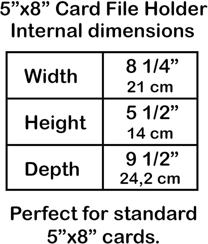 - Versatile and Compact: This card file holder is designed to accommodate 5 x 8 inches cards, making it suitable for various applications such as recipes, contact information, study notes, documents, bills and much more; Its compact design ensures that it won't take up much space on your desk, countertops, or shelves, making it perfect for both home and office use