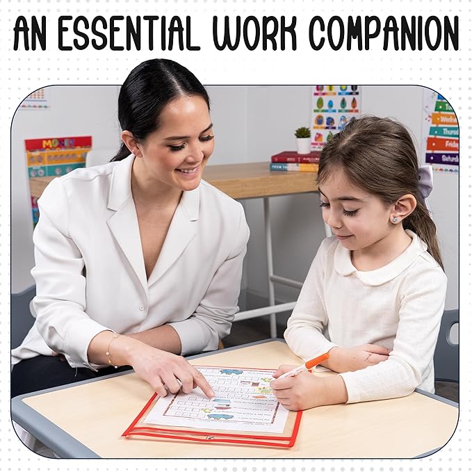 • Classroom Hero - Our clear dry erase pockets are ideal for holding worksheets, allowing students to write and wipe away answers, promoting active participation and reusability.