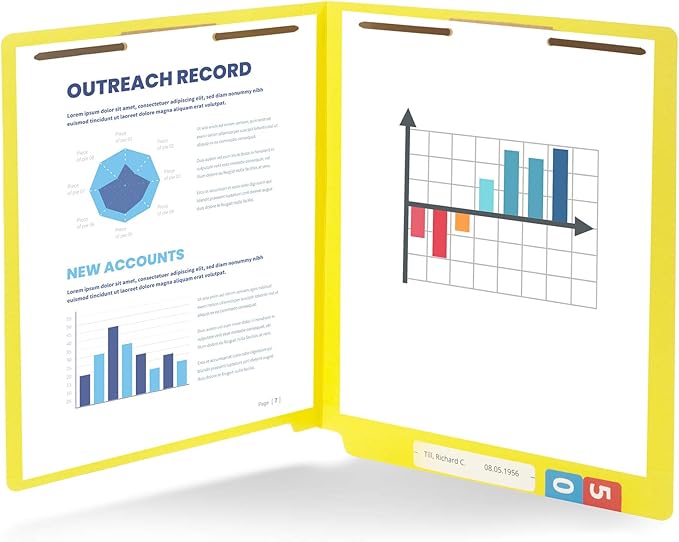 • Fastener file folders that are designed with our thick 11 PT manila paper stock and durable 2 prong fastener design