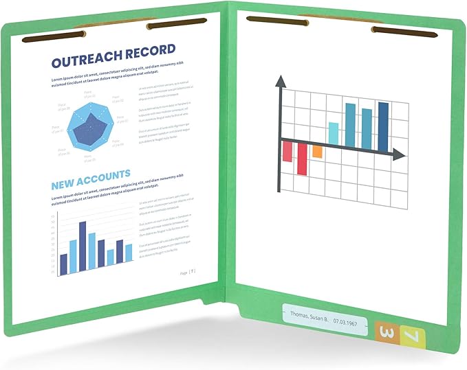 • Fastener file folders that are designed with our thick 11 PT manila paper stock and durable 2 prong fastener design