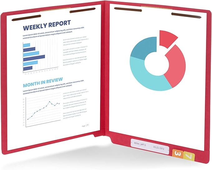 • Fastener file folders that are designed with our thick 11 PT manila paper stock and durable 2 prong fastener design