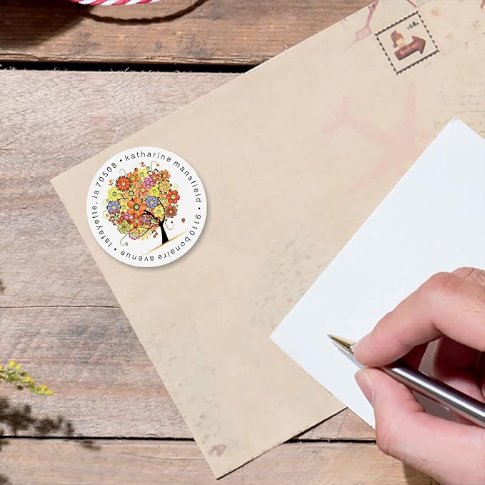Colorful Images Blooming Tree Floral Return Address Mailing Labels, Personalize with Name & Address, Set of 144 Self Adhesive, Easy Peel Flat Label Sheets, Round, 1 Design