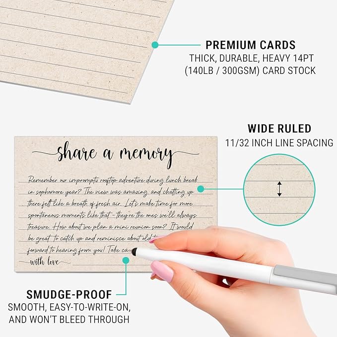 • Premium Card Stock: Thick, durable 14pt (140lb / 300gsm) card stock with a smooth, matte, easy-to-write-on finish. Heavy weight makes cards perfect for placement in a memory jar or book or on a memory board. Acid-free card stock won't yellow so your guests' memories and messages will stand the test of time.
