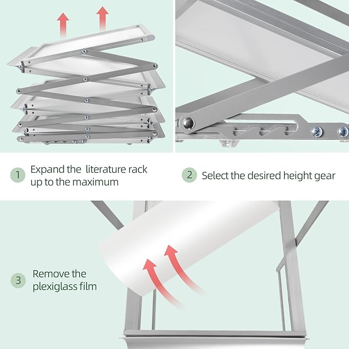 • Folding Literature Rack : The aluminum brochure display rack is collapsible, set up and break down is wery easy, unfold big enough, store very small.