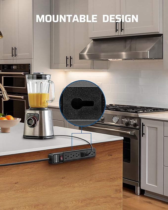• 【 Wall Mountable 】Wall mount 6 outlet surge protector power strip has 2 keyhole mounting slots on the back, providing convenient wall mounting options; it can also be mounted to the workbench or under a desk
