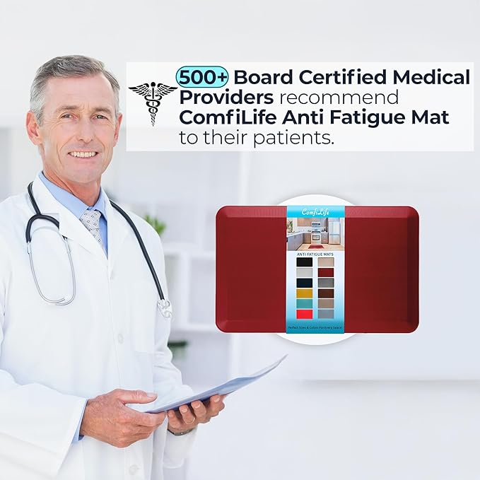 ComfiLife Anti Fatigue Floor Mat – 3/4 Inch Thick Kitchen Mats for Floor, Standing Desk Mat, Kitchen Rug – Comfort at Home, Office – Durable – Stain Resistant – Non-Slip Bottom (20" x 39", Red)