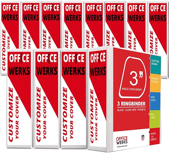 • Premium quality — 3" Angle D-Ring Binder comes with two opaque interior pockets. Strong gap-free binder rings keep your papers securely in place. All 3 sides are customizable for a coordinated look, front, back and spine. Assembled in the USA