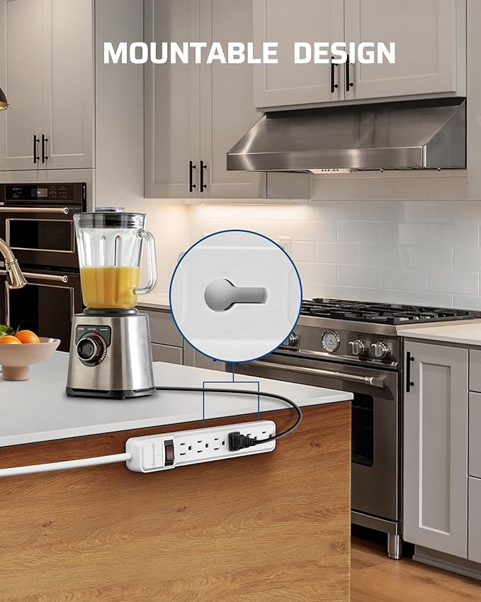 • 【 Wall Mountable 】Wall mount 6 outlet surge protector power strip has 2 keyhole mounting slots on the back, providing convenient wall mounting options; it can also be mounted to the workbench or under a desk