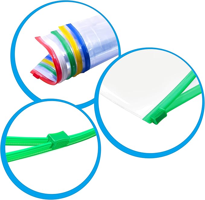 • Classic Design: Clear zipper bag PLUS tag pocket, color-coded seals for easy sorting. Each could hold up to 40 pages or more, perfect for normal course content and project needs.