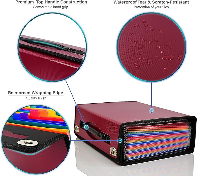 • 24 Individual Pockets with Colorful stylish design are tabbed to allow for adding handwritten labels, ensuring each section can be instantly identified for quick access.