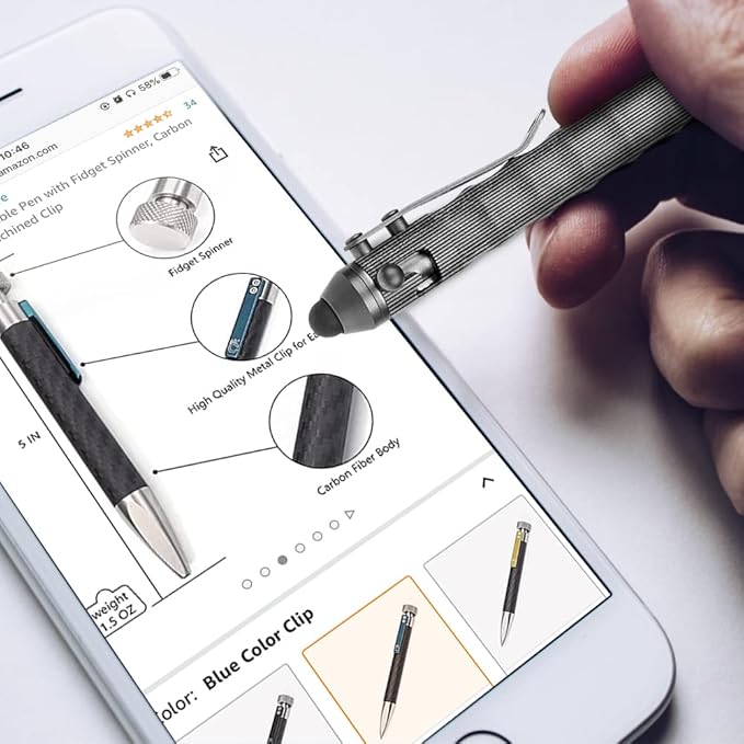 Cool Hand 4.5'' Bolt Action Pens, EDC Ballpoint Ink Refillable, Stylus for Touch Screen, Ergonomic Grip, Hold in Texture with Finger Grooves
