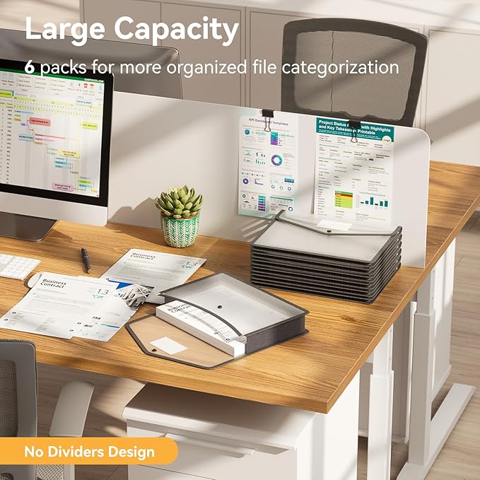 ABC life 6 Pack Plastic Expanding File Folder, Folders for Documents with Snap Closure, Black File Folder Organizer Holder, Transparent Accordion File Pouch,Large Capacity, Fit Letter/A4 Size