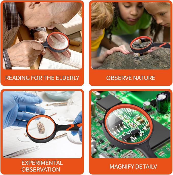 • 【3 Pack Magnifying Glass】 3 Pack 10X handheld Rubber reading magnifier gives you a clearer experience.