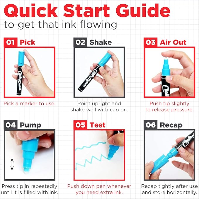 • Mess-Free - These liquid chalk pens are washable, dustless, non-toxic and safe for use at home