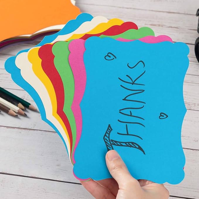 • Package Include: It contains 50 pieces colorful blank kraft paper cardstock ( 5 x 7 inches); 10 colors and 5 pieces of each color.
