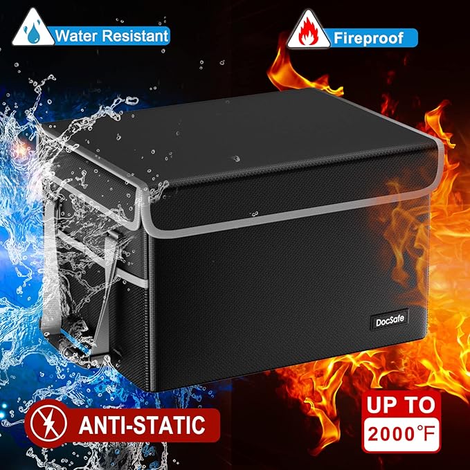 - Fireproof and water-resistant safe: Fireproof file box is made of anti-static double layered non-itchy silicone coated fiberglass which stands up the temperature up to 2000℉.It has been passed by SGS TEST(UL94 VTM-0 Certified).Fireproof box is not only fireproof but also high water resistant in case it gets wet for any reason.Nothing is completely foolproof, but added protection is always a good idea.
