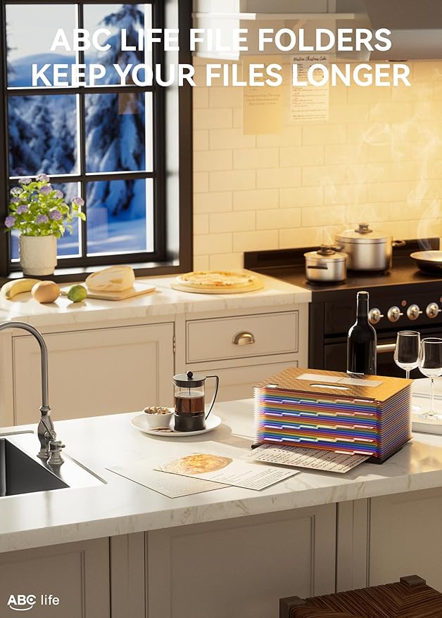 • ✅【26 POCKETS MONTHLY FILE ORGANIZER】ABC life 26 pockets Accordian File Organizer suitable for filing tax and storing important family documents. Product size is 13 "x 9.4"x 28", which can be used to store plenty of Letter/A4 size files.
