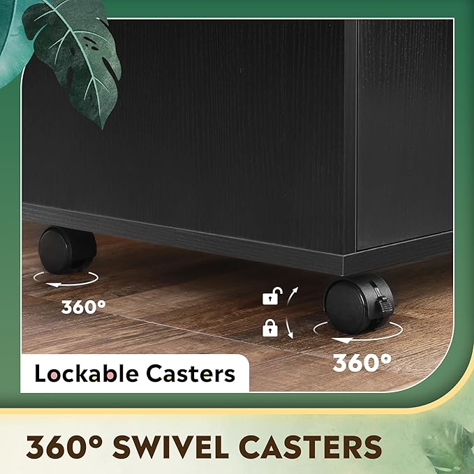 - Five 360° Swivel Wheels Add Mobility: The lateral office cabinet rolls on 5 swivel wheels, 2 casters equipped with brakes on the front, allowing it to be moved steadily or freely around any space as needed.