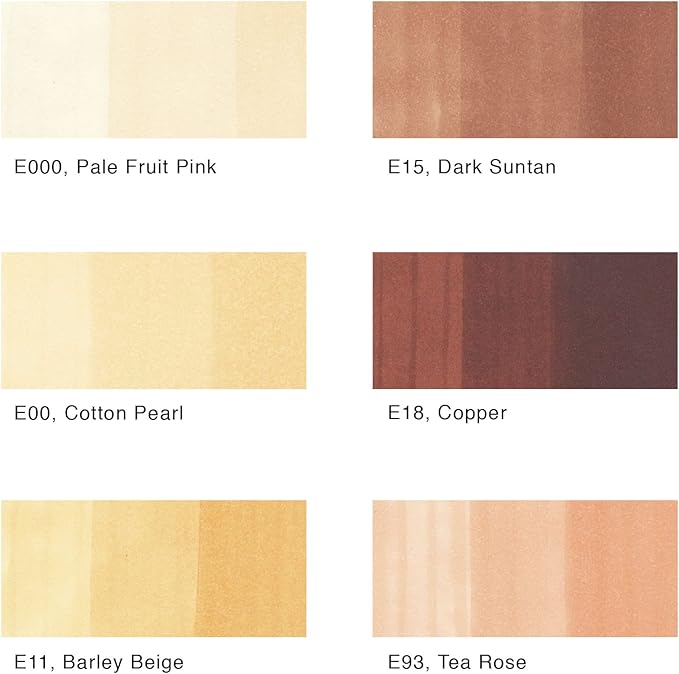 • This product is a new and improved version of our old model, Copic Sketch 6pc Skintone Set. This set includes a combination of the earth-tone colors E000, E00, E11, E15, E18, E93. This set is specifically curated for drawing portraits, but can also be used for landscapes.