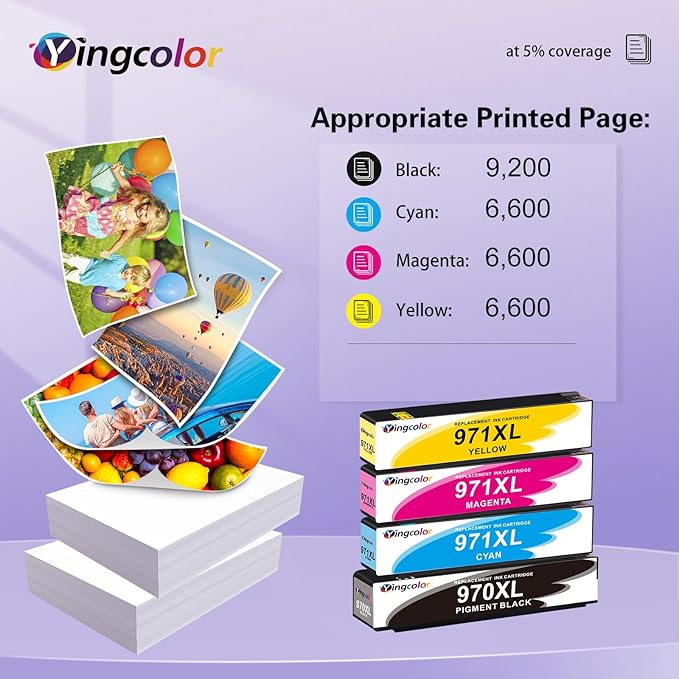 - High Capacity: About 9200 Pages Compatible for HP 971xl Ink Cartridges and about 6,600 Pages per 971 ink for hp at 5 percent Coverage