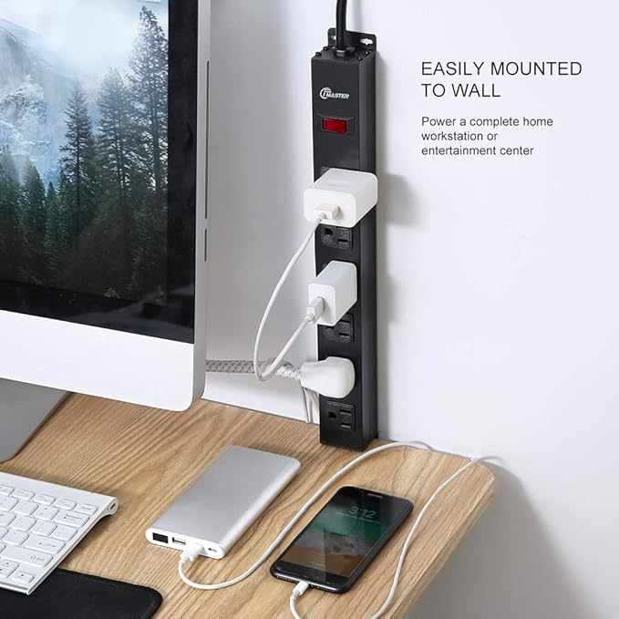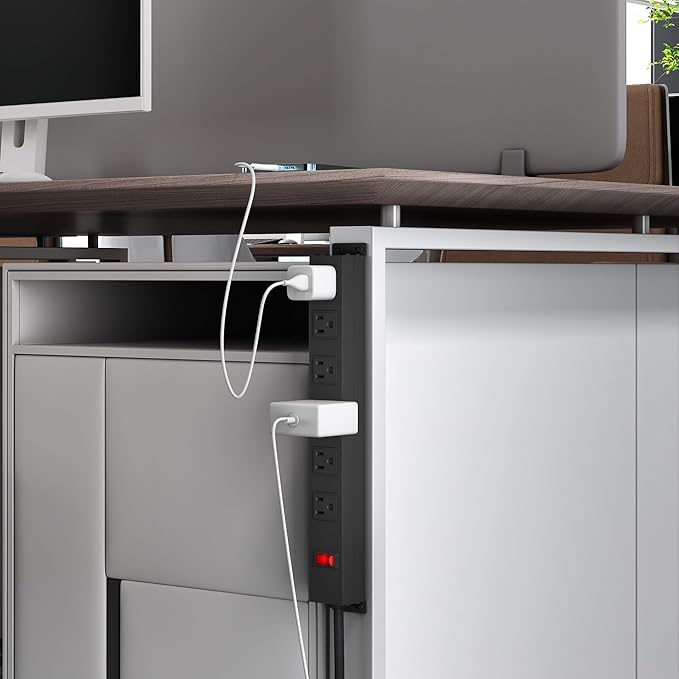 • WALL MOUNTED DESIGN:Durable metal power strip has mounting holes on the top and bottom, which can be installed under the table, table leg, wall and other places arbitrarily. It is convenient and can be used for a long time.