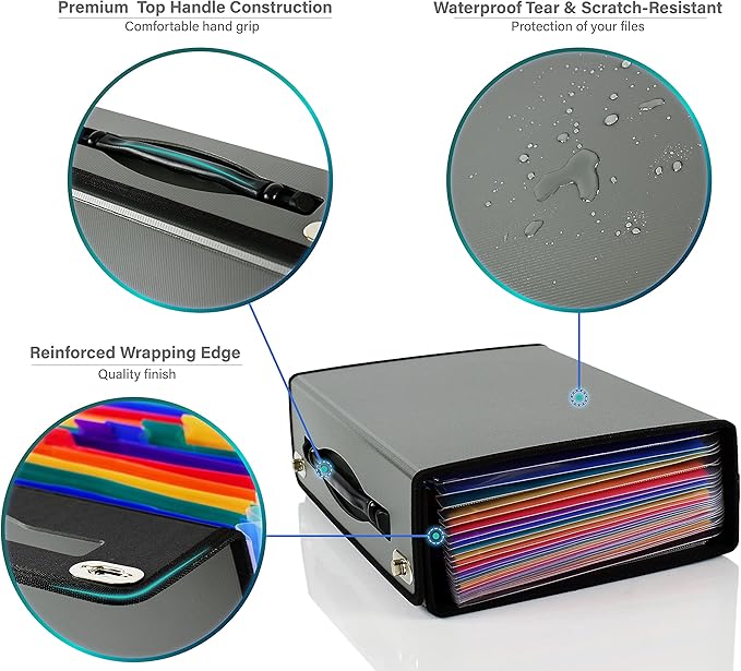 • 24 Individual Pockets with Colorful stylish design are tabbed to allow for adding handwritten labels, ensuring each section can be instantly identified for quick access.