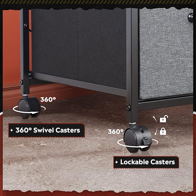 - Easy to Move: Rolling on 4 wheels, this mobile file cabinet can fix or move around your home office freely. Built-in brakes on front 2 casters to keep it in position and add stability. Unique fabric drawer design makes it only weigh 22 lbs. and light to move.