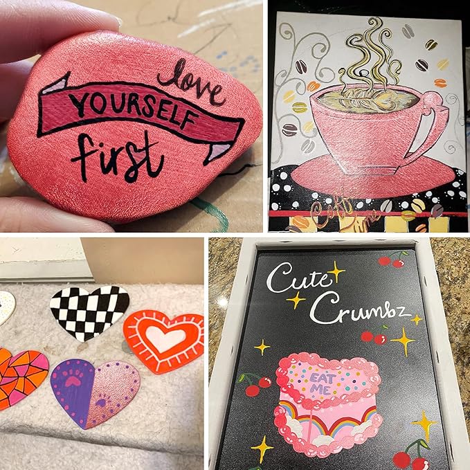 • JEFFNIUB Metallic Acrylic Paint Markers for Rocks Painting,Fabric,Wood,Glass,Ceramic,Canvas,Scrapbooking,Card Making Supplies
