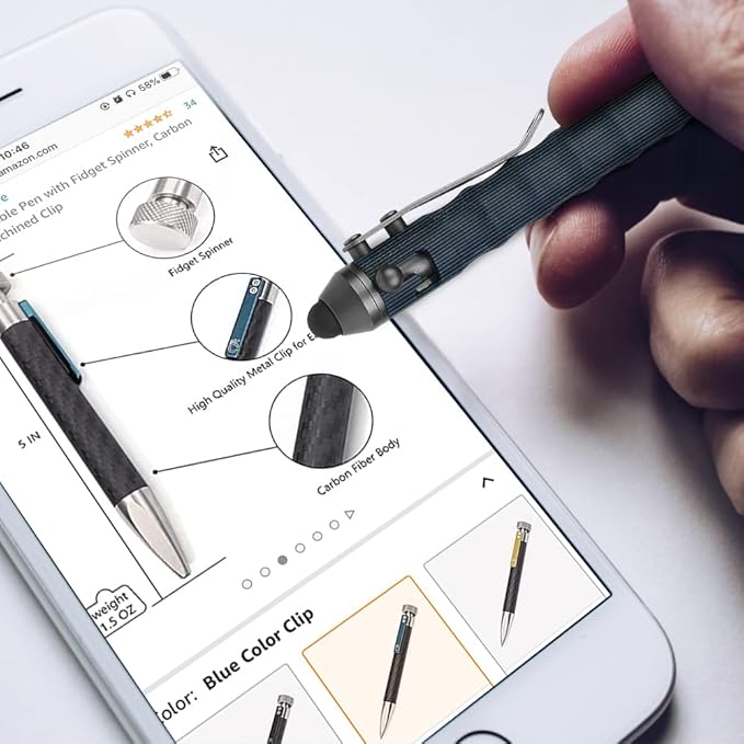 Cool Hand 4.5'' Bolt Action Pens, EDC Ballpoint Ink Refillable, Stylus for Touch Screen, Ergonomic Grip, Hold in Texture with Finger Grooves