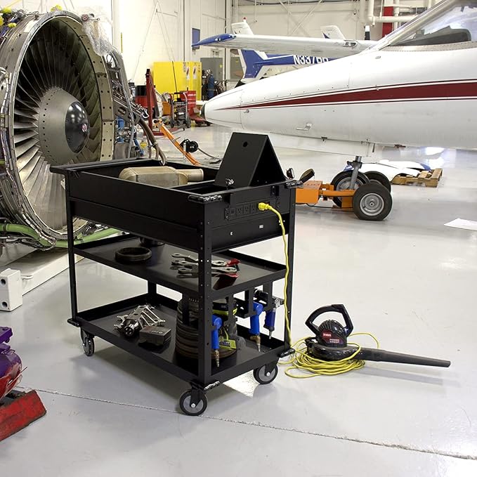 • Two steel shelves - bottom shelf is fixed and center shelf is height adjustable for greater storage flexibility