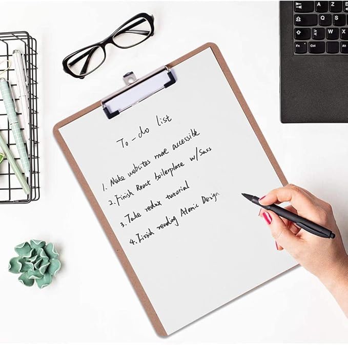 • Eco-Friendly Wood Clipboard : Made from 100% recycled wood fibers, lightweight and sturdy. Finished on both sides with smooth, rounded edges.