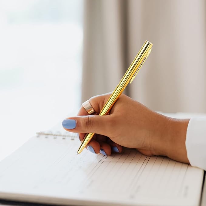 3 Pack Slim Ballpoint Pens Black ink Medium Point 1.0 mm Writting Pen, Great Gift for Wedding Business Office Students Teachers Christmas (Gold)