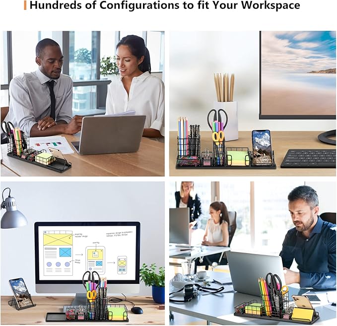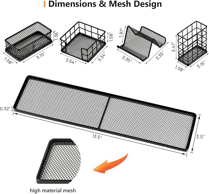 - 【Durable Stylish Material】: Desktop organizer is made of powder coat finish and craftsmanship, wear-resistant, sturdy, anti-oxidation and long lasting without paint shedding. Black metal finish surface, simple and stylish, easily match other office accessories and surrounding decorations. Beautify your desktop