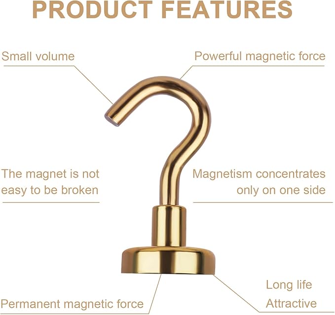 • 【Super Durablel】The heavy duty magnetic hook is coated with three layers: Ni-Cu-Ni, so the magnetic hook is shiny and anti-rust, provides protection for the magnet and helps the hook to chip or crack. Magnetism is always strong