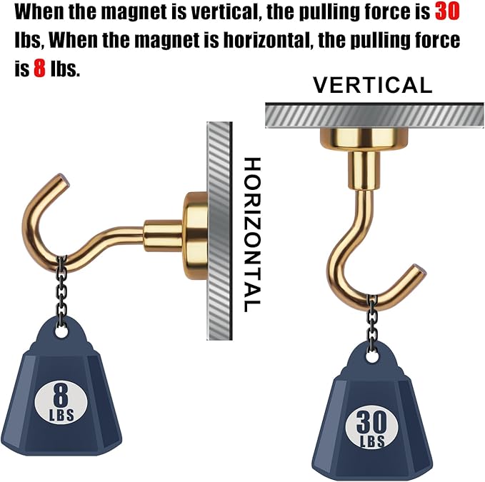 • NOTE】30lbs magnetic hooks tension is based on the direction of tension perpendicular to the contact surface - if used horizontally, reduce by 2/3
