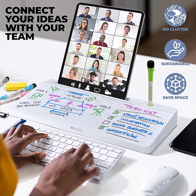 • A Perfect Fit - This 9.5x6.5x15.76” glass white board for desk fits right between your monitor and keyboard so that it's always in front of you. The dry erase desktop board won't take up much space.