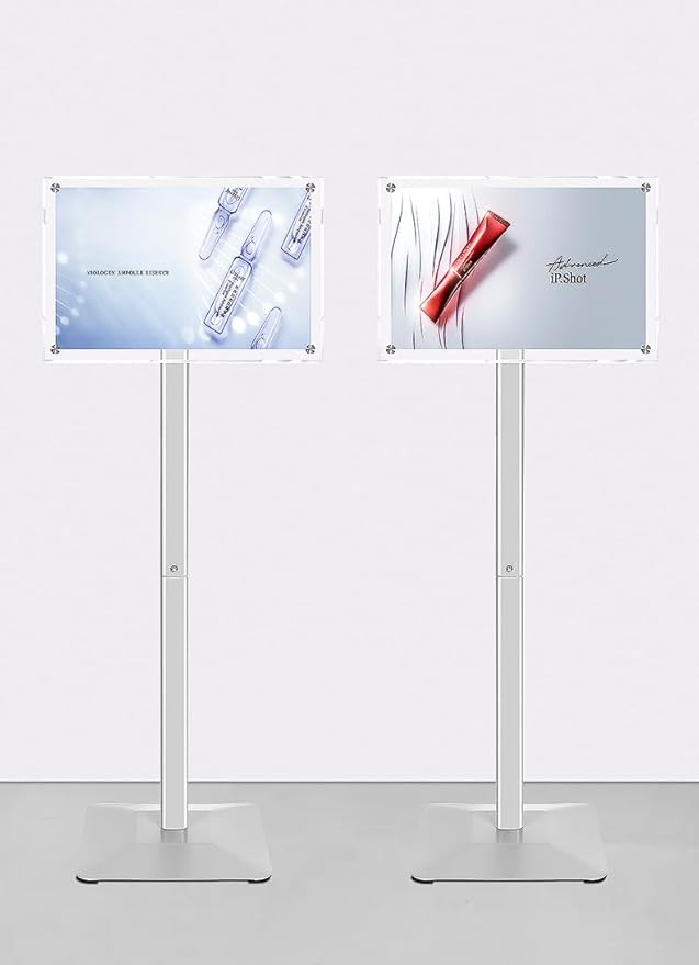 - Multi-angle Display floor stand - Sturdy metal material floor standing acrylic sign holder,the rotating head feature allows the advertisement to be used in portrait or landscape as you like.Our new stylish Floor Sign Holder captures the customer's attention in all frequented traffic areas.