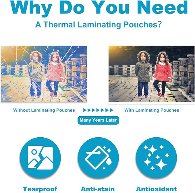 • 【Wide Application】: The laminate paper is great for protecting and preserving documents, photos, menus, recipe cards, certificates, children's artwork and more.