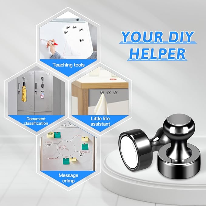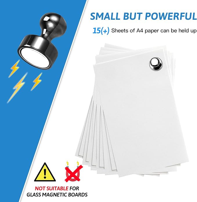 - 【Best Organiser】With these magnetic push pins, everything will become tidy and orderly. Perfect for holding paper, posters, cards, photos, school paperwork, kids' artwork, note list, or potty training charts sliding on whiteboards, fridges, bulletin boards, magnetic maps, calendars, lockers, file cabinets, and other magnetic surfaces.
