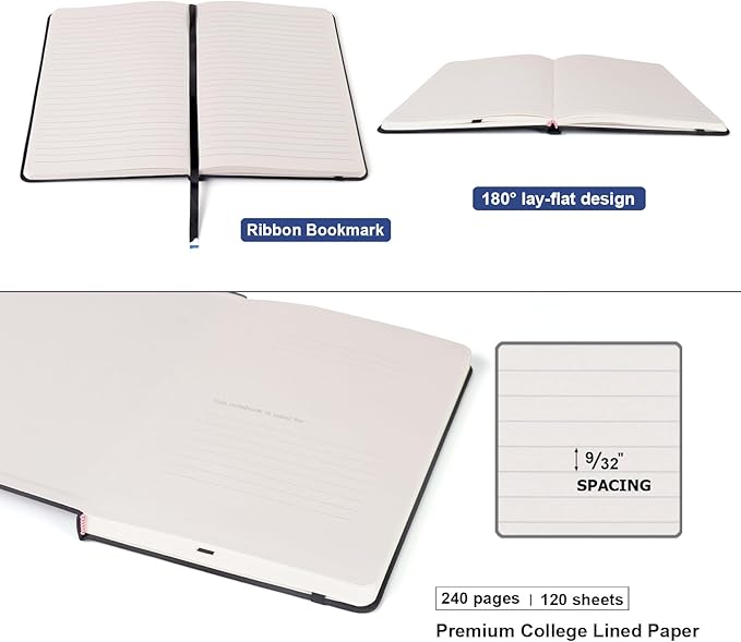 • 【180° Lay-Flat Binding】Lay-flat spine design with reinforced thread-binding ensures seamless writing without mid-page gaps.