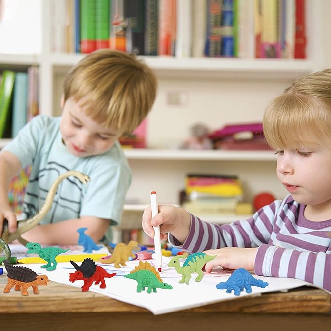 • Educational Pencil Erasers: Our erasers set helps to develop kid's creativity, patience, and hand-eye coordination. The bright colors and attractive figures will easily attract kid's attention and draw them to the fancy dinosaur world.