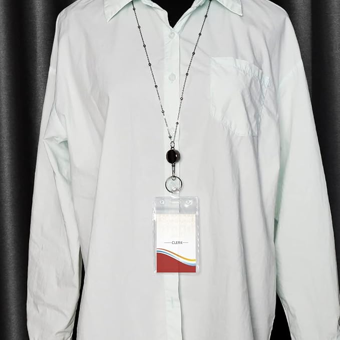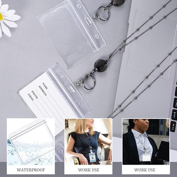• 【Value Combination】3 Pcs black beaded badge lanyards; 3 pcs retractable reel clip; 6 pcs waterproof badge holders, horizontal and vertical two styles, easily meet your different needs