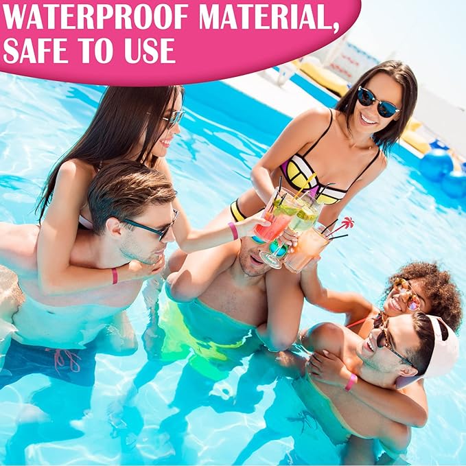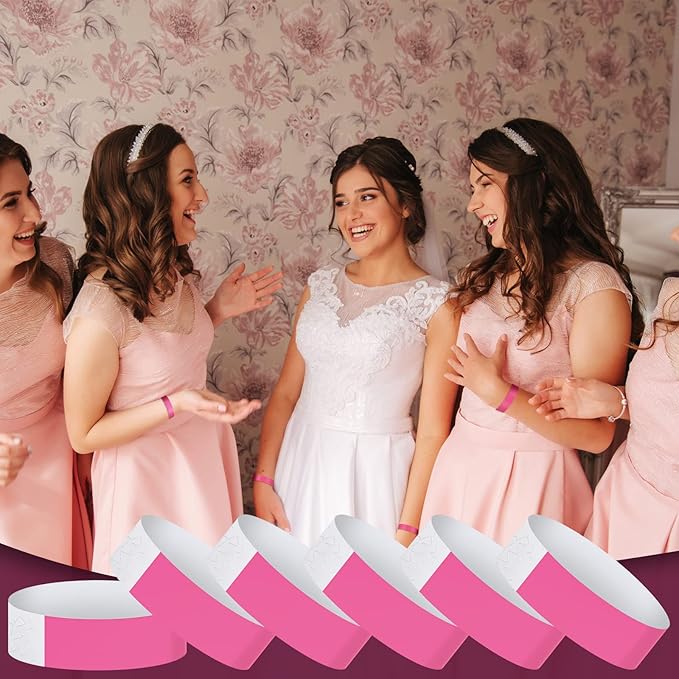 600 Packs Paper Wristbands for Events Neon Party Wristbands Colored Waterproof Paper Club Arm Bands Lightweight Identification for Concert Bar Entrance Admission(Pink)