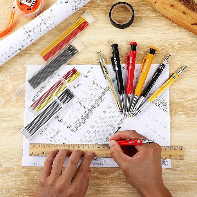 • 【45mm Extended Tip for Precision Work】our carpenter pencil features a long 45mm tip, allowing accurate marking in deep holes and tight spaces—saving time and improving efficiency