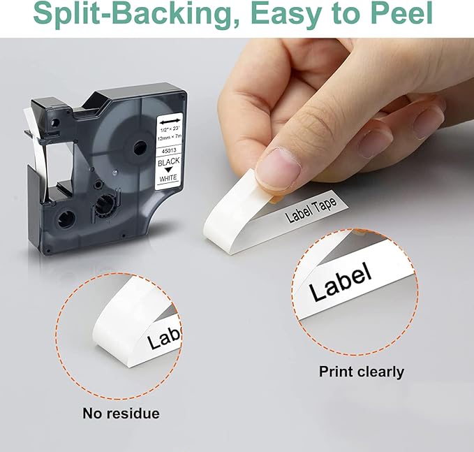 - Easy-to-peel & Print Clearly: Compatible with 12mm label tape a45013 refills design with split backing for easy peeling. No sticky residue remains when the labels are removed. Print clearly and naturally by using with labelManager label maker. Topcolor label tape is a good ideal choice to tag items and helps you classify them