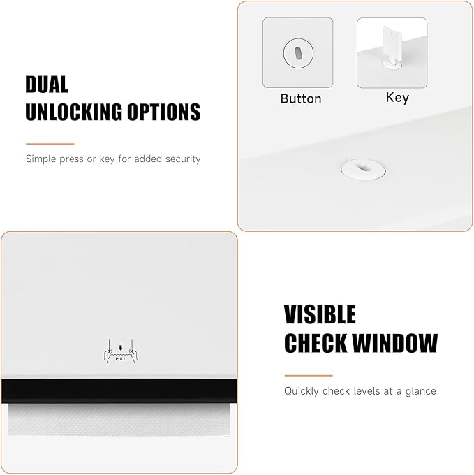 • 200-Sheet Capacity – Holds up to 200 multi-fold/tri-fold paper towels (within 3.1” width when folded), reducing refill frequency and saving time and effort