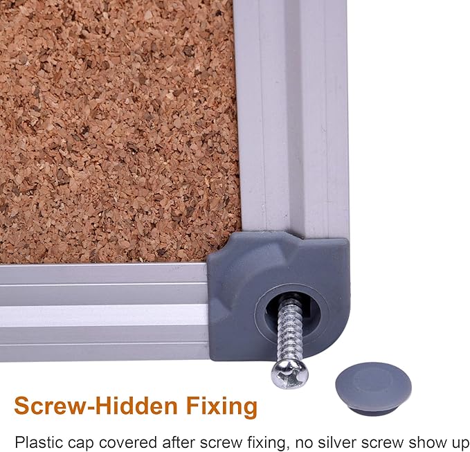 • AESTHETIC: Self-healing cork surface hides push pin holes once push pins are removed. Add and remove notes as you will! Aluminum frame coated in black give a decorative looking.